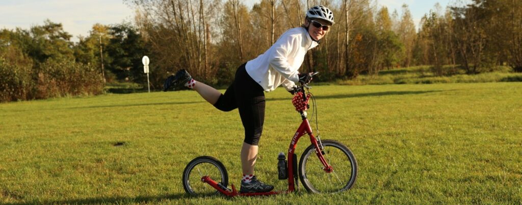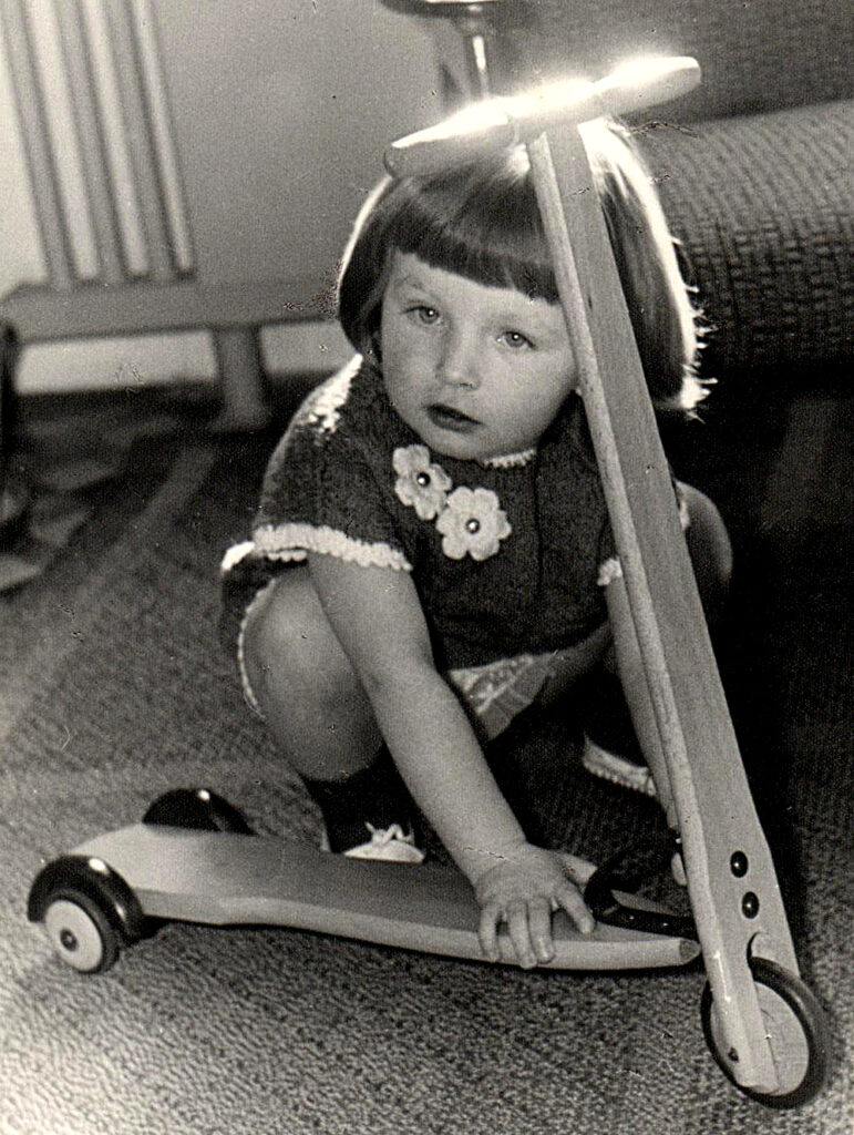 Ve volném čase jezdím na koloběžce, řekla bych dokonce, že jsem nadšenou koloběžkářkou… Ostatně o mém vztahu ke koloběžkám vypovídá i fotografie z dětství. Takže kdo ví, kdy to začalo. Ale ráda jezdím i na kole nebo mě potkáte s batohem, jak se toulám přírodou s fotoaparátem v ruce.